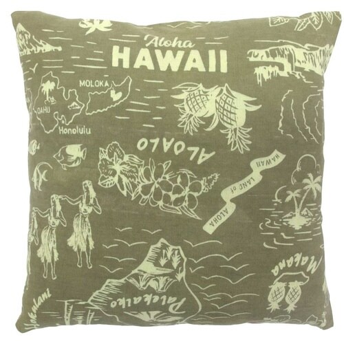 クッションカバー ヴィンテージアロハ 45cm用 インドコットン オリーブ ※3個以上から注文可能(販売価格は1個単位の価格)