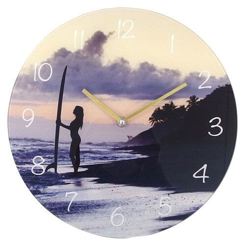 掛け時計 ガラスウォールクロック ビーチD 直径30cm 電池式 ※2個以上から注文可能(販売価格は1個単位の価格)