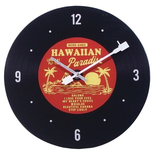 掛け時計 ガラスウォールクロック ハワイアンレコード 直径30cm 電池式 レッド ※2個以上から注文可能(販売価格は1個単位の価格)
