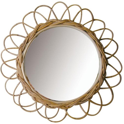 ヨーロッパのアンティークデザインを思わせる風合い豊かなラタン製のフラワーミラーLサイズです。 身だしなみのチェックや、インテリアアイテムとしても使えるちょうど良いサイズです。 |