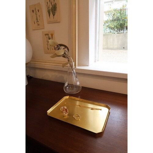 真鍮風の加工を施したアクセサリートレーです。 アクセサリーや時計、小物など様々な用途に使えます。 SサイズとLサイズの2サイズ展開です。 ナチュラルな雰囲気のお部屋にもしっくりとなじみます。 |