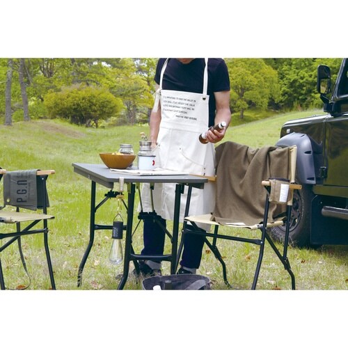 ワーク×ミリタリーテイストにビンテージ感がプラスされたお洒落なワークエプロンです。 あえて浅めに作られた胸当てが男性でも使いやすくなっています。 |