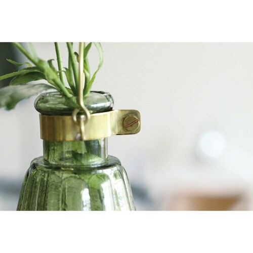 季節の草花などを飾る一輪挿しとしてご使用いただけます。 取っ手があるので、様々な場所に吊るして飾ることができます。 窓辺に置くと、ガラスと真鍮が太陽の光に反射してキラキラと光ります。 |