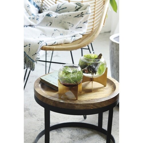 球型のガラス容器とアイアンスタンドを組み合わせたフラワーベースです。 大きすぎず小さすぎないちょうどいいサイズ感です。 中が見えるガラスボウルなので、テラリウムにもぴったりです。 |