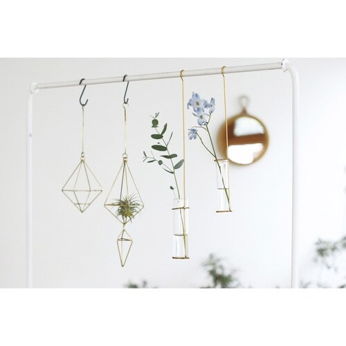 生花も飾れるゴールド仕上げのハンギングフラワーべースです。 季節のささやかな草花を飾るのにちょうど良いSサイズです。 ドライフラワーだけでなく生花も飾ることができます。 フックの柄の部分に「in |