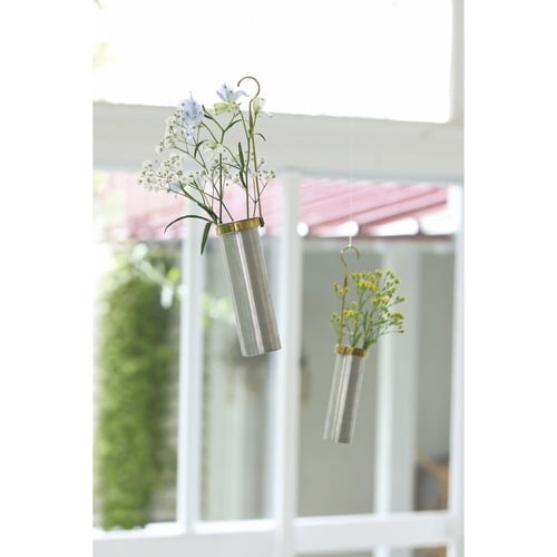 ブラスとアルミを組み合わせた吊り下げタイプのフラワーベースです。 フレームとアルミベースは取り外しが可能です。 吊り下げている状態でも水の入れ替えができます。 フックの柄の部分に「in |
