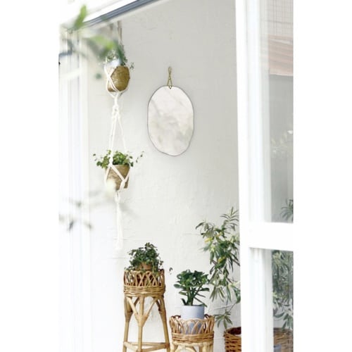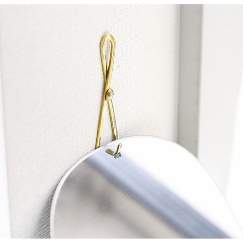 ウェーブ状のミラーに真鍮のフックを合わせたおしゃれなウォールミラーLサイズです。 しっかり身支度できるサイズ感で、玄関やリビングなど広いスペースでも存在感を発揮します。 |