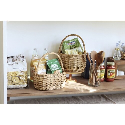 風合い豊かな皮つきラタン製オーバル型グリーンバスケットです。 こだわりの天然素材「皮つきラタン」の味わいを楽しめます。 飾ったり、持ち運んだりとお好きなスタイルでお使いいただけるバスケットです。 |