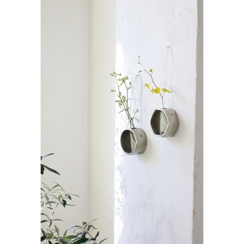 壁に吊るして楽しめるフラワーベースです。 クールなアルミの表情と、瑞々しい草花の組み合わせをお楽しみいただけます。 ガラスベース部分は取り外すことができるので、水の入れ替えやお手入れも楽ちんです。 |