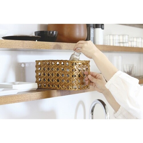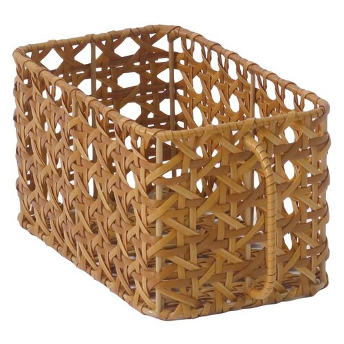 洗える手編みバスケット 八つ目状編み込みデザイン アイアンを使用した丈夫なつくり 取り出しやすい取っ手付き |