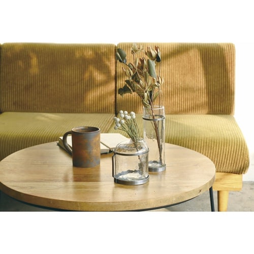 無骨な風合いのスチールとハンマートーン仕上げのガラスを合わせたフラワーベースです。 インダストリアルなインテリアやクールな印象を与えたい空間の演出にぴったりです。 |
