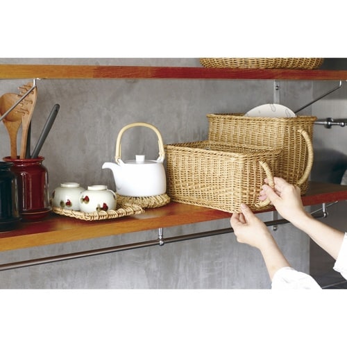 汚れたらさっと水拭きできる、キッチン収納に最適なポリプロピレン製のストッカーバスケットです。 フレームにはアイアン素材を使用しており、安定感があり丈夫です。 |