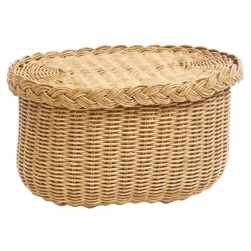 水に強い素材で編まれたふた付きバスケット Lサイズです 自然な温かみの「ユティル ナイール」シリーズです 水洗いできるプラスチック製です |