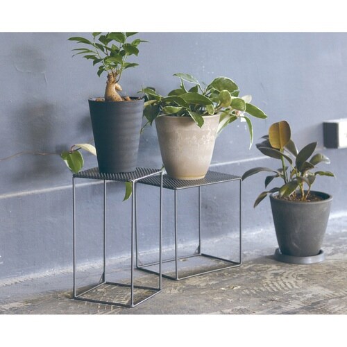 3号鉢が収まりよく置けるプランタースタンド HIGHです。 無骨な鉄フレームにメッシュ状の天面がポイントの、クールな印象を与えるデザインです。 |