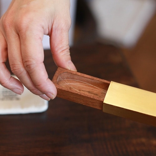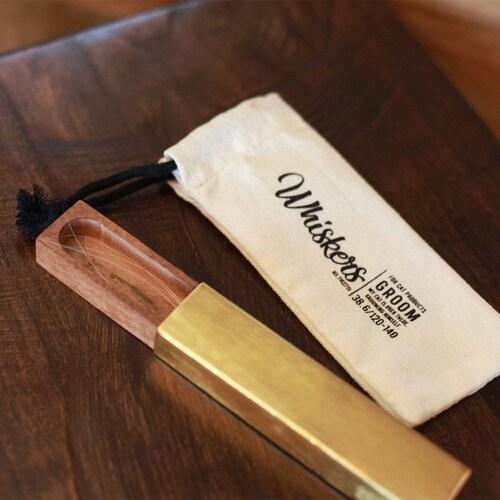 真鍮色に仕上げたアイアン素材の猫のヒゲケースです。 縁起が良くお守りともされる猫のヒゲを入れるためのケースをアイアンとアカシアの木で作りました。 |
