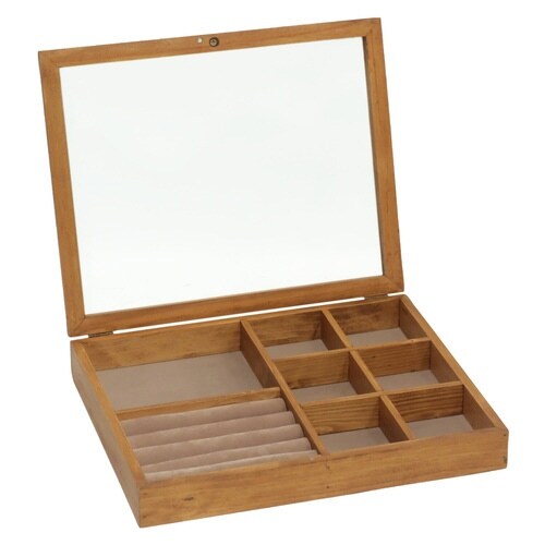 アンティーク風アクセサリーケースです。 NEIN MARKE(ナインマーケ)シリーズの商品です。 開けやすいガラス蓋が付いています。 整理しやすい仕切りが付いています。 ベロア生地を敷いた底板です。 |