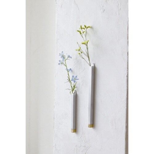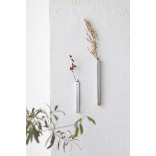真鍮とアルミを組み合わせたシリンダーフラワーベース Lサイズです。 水を入れて使用できるので、草花を楽しみながら壁面や空間を彩ることができます。 |