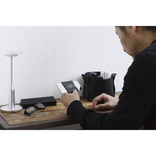 メイク直しなどに便利なポータブルミラーです。 アルミ製のケースに鏡が内蔵されており、片側から引き出すと、同時に反対側の鏡も出てくる仕組みです。 |