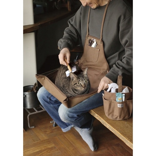 エプロン 猫 お世話 爪切り ブラウン