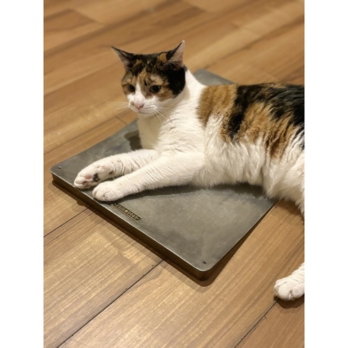 猫の体温を効果的に吸熱、放熱し、自然に冷たさを感じられるベッドです。 熱伝導率の高いアルミ素材を使用しています。 猫が体を伸ばしてくつろげるようにアルミ面を緩やかなカーブに仕上げています。 |