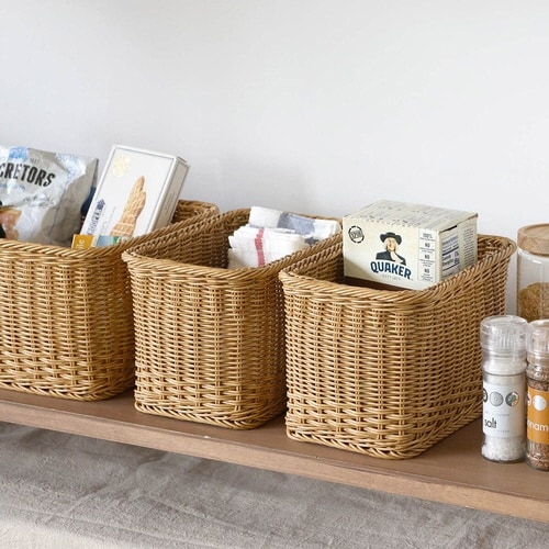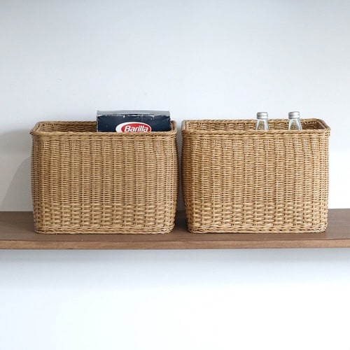 水に強いポリプロピレン、ポリエチレンチューブを使って手作業で編まれたバスケットです。 食品ストック、玄関収納、リビングや子ども部屋の収納など、家中の様々な場所で活躍します。 |
