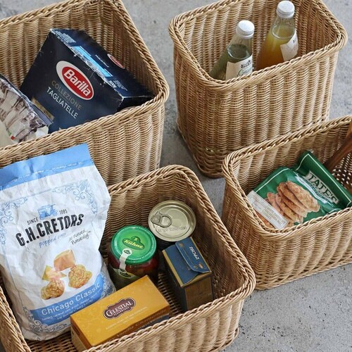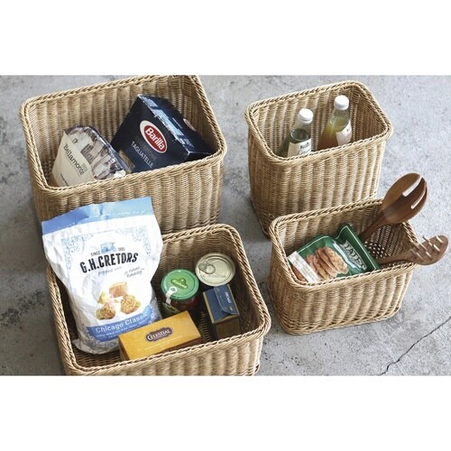水に強いポリプロピレン、ポリエチレンチューブを使って手作業で編まれたバスケットです。 食品ストック、玄関収納、リビングや子ども部屋の収納など、家中の様々な場所で活躍します。 |