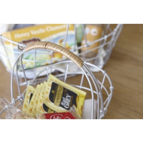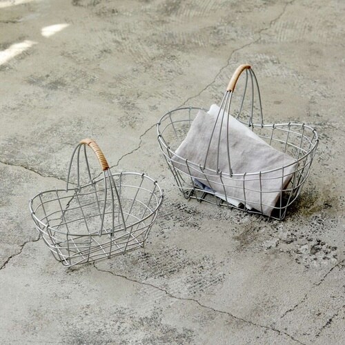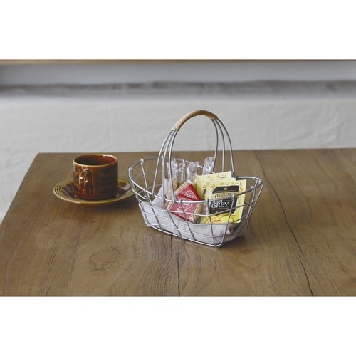 落ち着いたシルバー塗装で仕上げ、アクセントに柳を使ったワイヤーバスケットです。 ワイヤーバスケットは、「見せる収納」としてお部屋に置くだけで様になります。 収納物が見えて通気性が良いです。 |