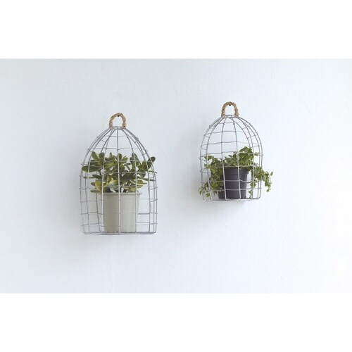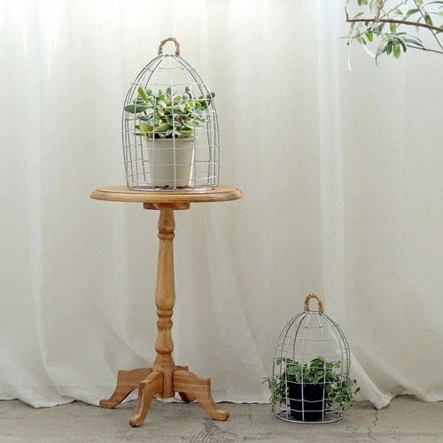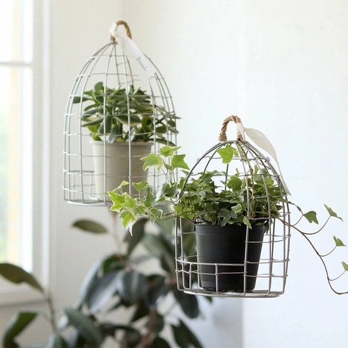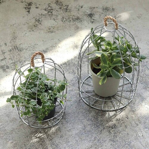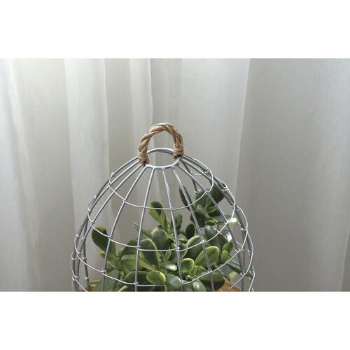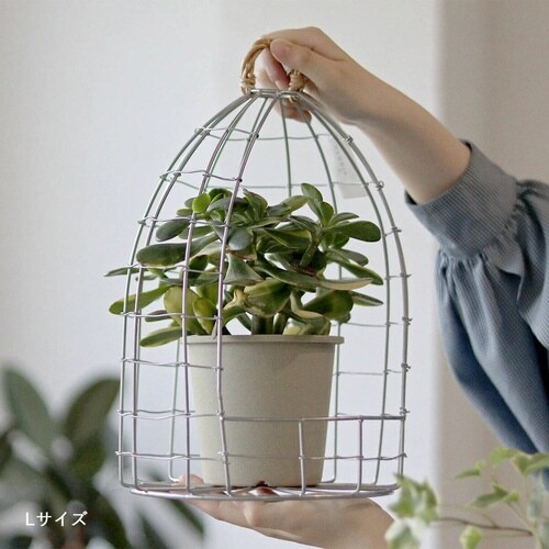 ワイヤーを使ってハンドメイドで編まれたバードケージポットホルダーLサイズです。 ナチュラル過ぎないシルバーカラーがインテリアのアクセントになります。 |
