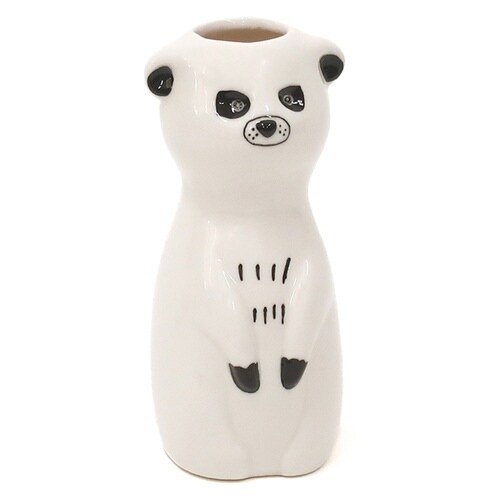 動物をモチーフにした磁器製のフラワーベース ミーアキャット 1輪の花を引き立て、玄関やリビングなどのちょっとしたスペースに飾りやすいサイズ感です。 |