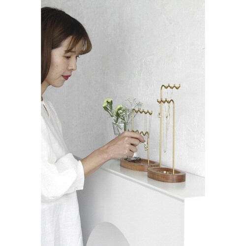 収納しやすい、機能的で美しいアクセサリースタンドです。 コンパクトに使える「ロー」と、ロングネックレスも掛けられる「ハイ」の2サイズをご用意しております。 |