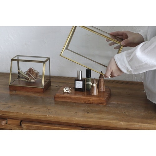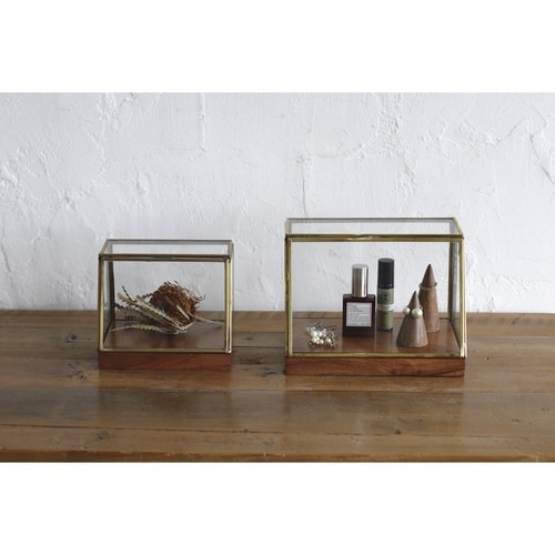 ドライフラワーや小物、アクセサリーなどを美しくディスプレイできるブラスショーケースです。 透明なガラスが光を取り込み、飾るアイテムをより一層美しく引き立てます。 |