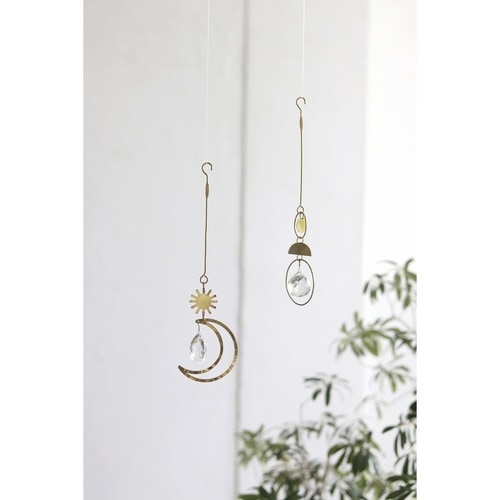 味わい深いブラスと美しいガラスで仕上げたオーナメントです。 ガラスのクリスタルが光を上手に使って幻想的な世界を演出します。 空間にこなれ感をもたらします。 |