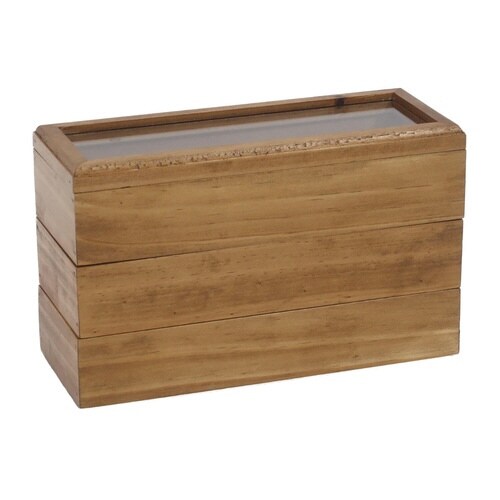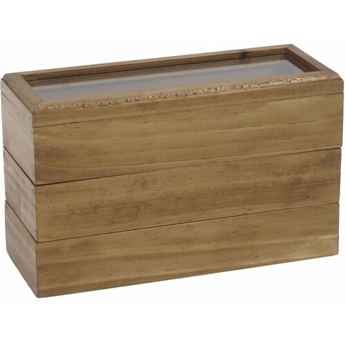 木のぬくもりを感じられるアクセサリーケースです。 リングや、メガネ、ネックレスなど日常使いのアクセサリーをまとめるのにぴったりのサイズです。 3段に重ねると省スぺ―スで収納できます。 |
