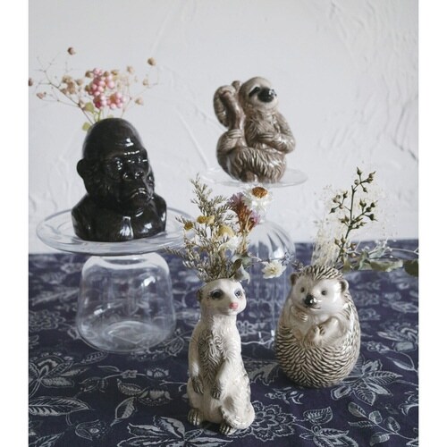 個性豊かな動物のフラワーベースです。 ドライフラワーや生花を入れることが出来ます。 ペン立てやディフューザーとしても使えます。 |