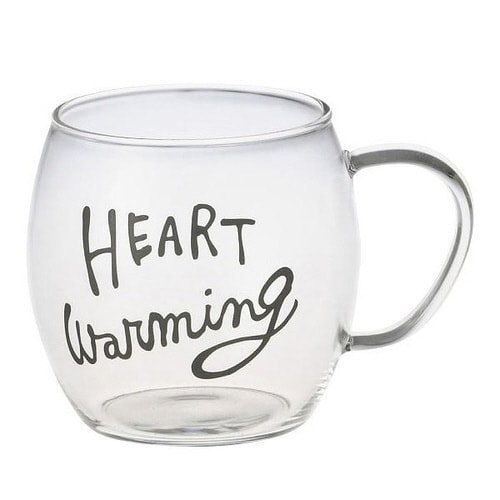 デザートやサラダにも!お洒落に使えるガラスカップ 手書き風の英文字、持ちやすい取っ手 オリジナルの箱入りで、贈り物にも最適 心も体もあたたまる、ハートウォーミングシリーズ |