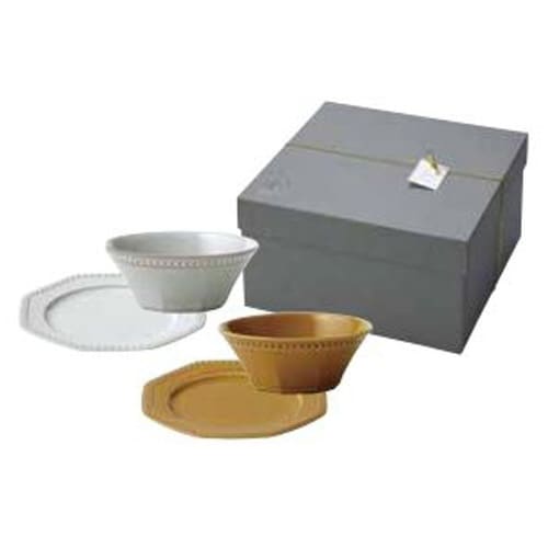 ギフトセット 食器 プレート ボウル ペアギフト Roots Colline 磁器 美濃焼 日本製 ネージュ×アンバー