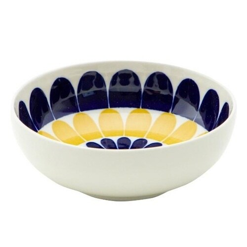 色鮮やかな大振り柄が目を引く、磁器製のボウルです。 一人分のサラダやスープの盛り付けに使いやすい、14cmサイズです。 コーンフレークやヨーグルトなど、朝食時にも活躍します。 |