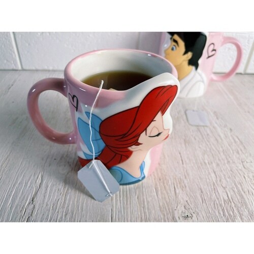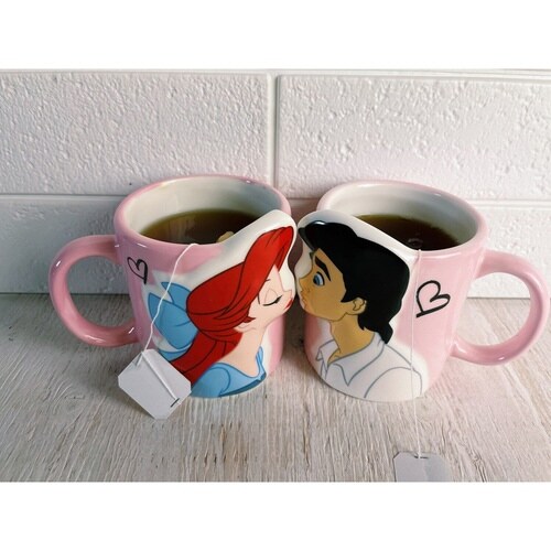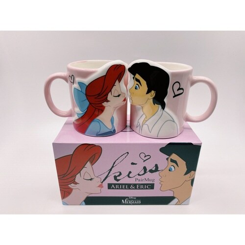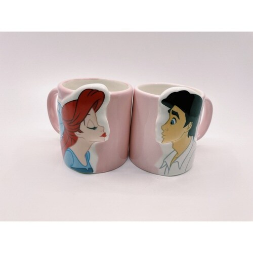 人気のディズニープリンセス、アリエルとエリック王子がキスをしているとてもかわいいペアマグカップです。 アリエルとエリック王子の顔部分が立体的に浮き出たユニークなデザインです。 |