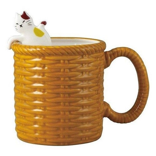 マグカップ バスケット 三毛猫 300ml スプーン付き 磁器 食器 ※2個以上から注文可能(販売価格は1個単位の価格)