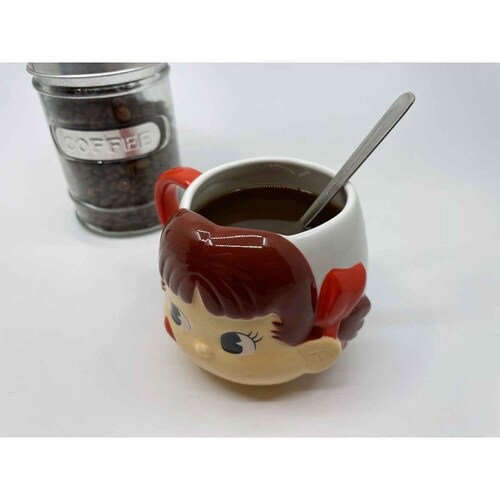 ペコちゃんのかわいいお顔がそのままマグカップになった、磁器製マグカップです。 ポコポコとした立体感があり、ほっぺや鼻のぷっくり感が表現されています。 裏面には「Peko」のロゴが入っています。 |
