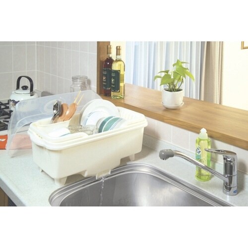 水切りカゴ 皿立て 水切り 流 フード付 中サイズ パールホワイト ※2個以上から注文可能(販売価格は1個単位の価格)