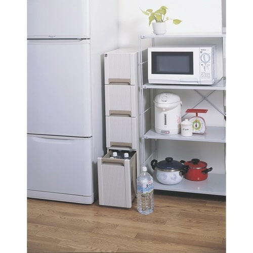 スペースを有効活用できるスリムタイプのキッチンストッカーです。 キッチンでは、インスタント食品や調味料のストックに便利に使えます。 引き出しがラクに開け閉めできるコマ付きです。 |