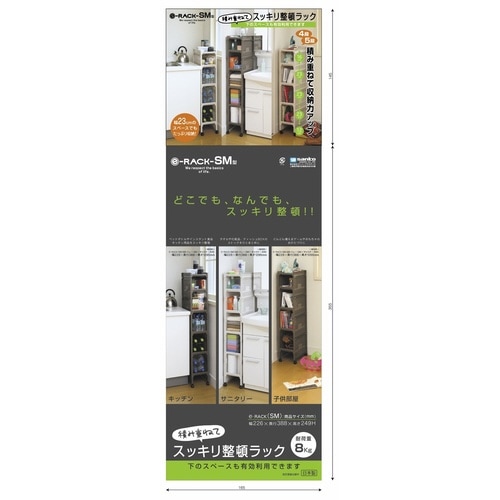 幅22.6cmとスリムながら奥行は38.8cmとたっぷり収納ができるe−RACK(イーラック)SMサイズです。 |