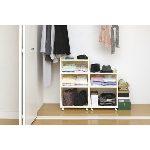 積み重ねて縦の空間を有効活用できるラックです。 同シリーズのラックと組み合わせて収納物に合わせた形の収納がつくれます。 間口が広く出し入れがラクに行えます。 通気性の良いメッシュ構造です。 |
