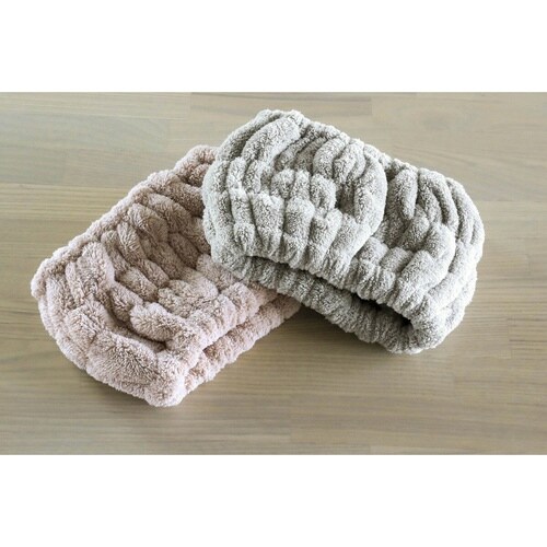 水に触れた瞬間、サッと吸水してくれるヘアバンドです。 頭をすっぽり覆って簡単にヘアドライ出来ます。 吸水力は綿のタオルの約5倍です。 |