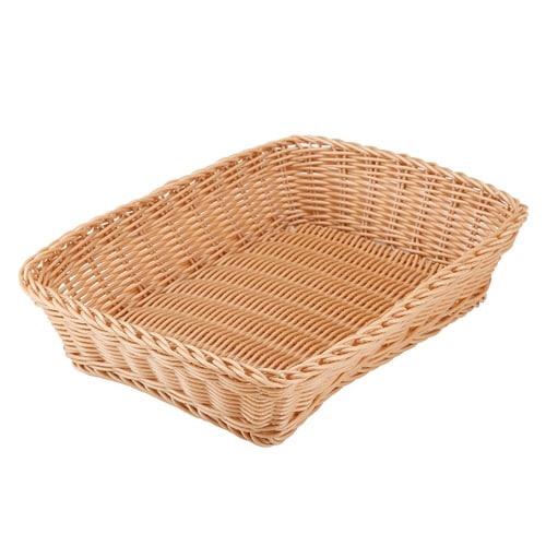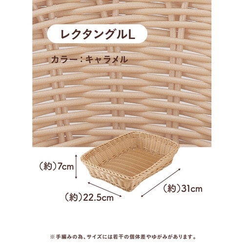 丸洗いOK・電子レンジ使用OKの、ポリプロピレン製バスケットです。 上品な籐のカゴをイメージしたナチュラルなデザインなので、食卓に良く馴染みます。 |