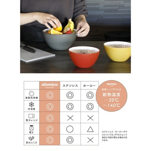 耐熱レンジボウル 18cm atomico 電子レンジ対応 食洗機対応 トマト ※5個以上から注文可能(販売価格は1個単位の価格)
