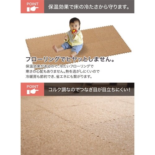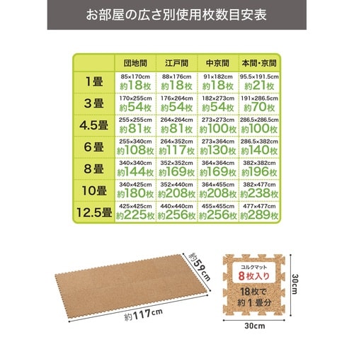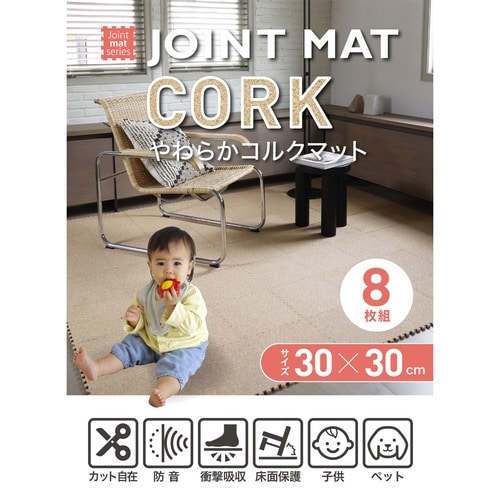 ジョイントマット やわらかコルクマット 8枚組 厚さ8mm 天然コルク 洗える ※2個以上から注文可能(販売価格は1個単位の価格)
