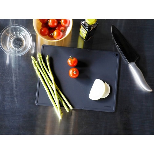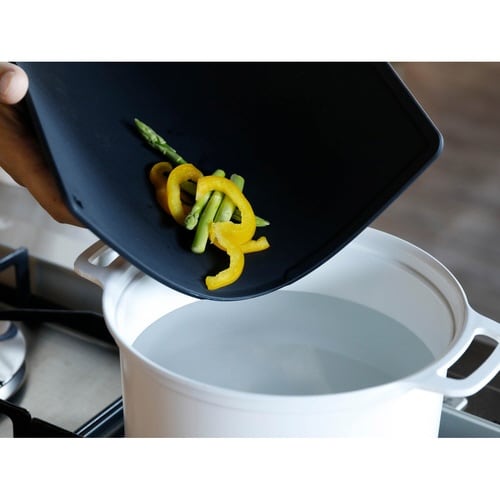 熱可塑性エラストマーは包丁の刃あたりが優しく傷がつきにくいので、雑菌の繁殖を抑えることができます。 両面で使い分けができます。 折り曲げられるので、鍋やフライパンに食材を入れやすくなっています。 |