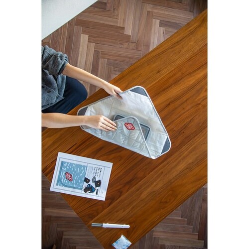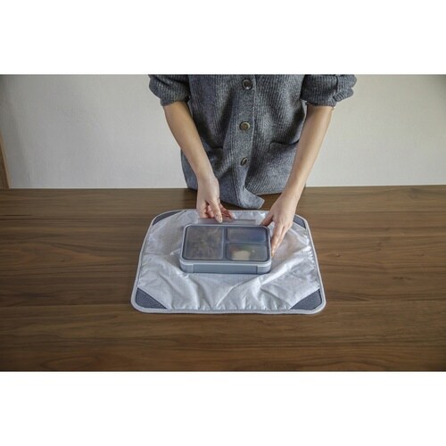 色々な形の弁当箱を、風呂敷のように包むことができる多機能なラッピングシートです。 保冷効果のある素材でできています。 保冷剤・調味料を入れるポケットがついています。 |